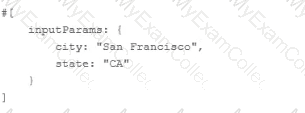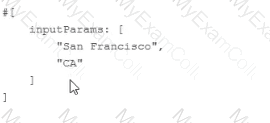 What expression correctly specifies inputparameters to pass the city and state values to the SQL query?