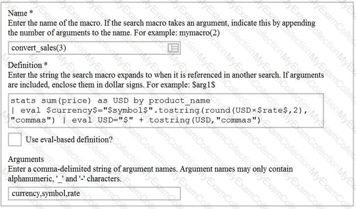 Based on the macro definition shown below, what is the correct way to execute the macro in a search string?