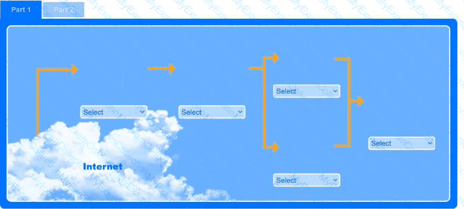 Use the drop-down menus to select the appropriate technologies for each location to implement a secure and resilient web architecture. Not all technologies will be used, and technologies may be used multiple times.