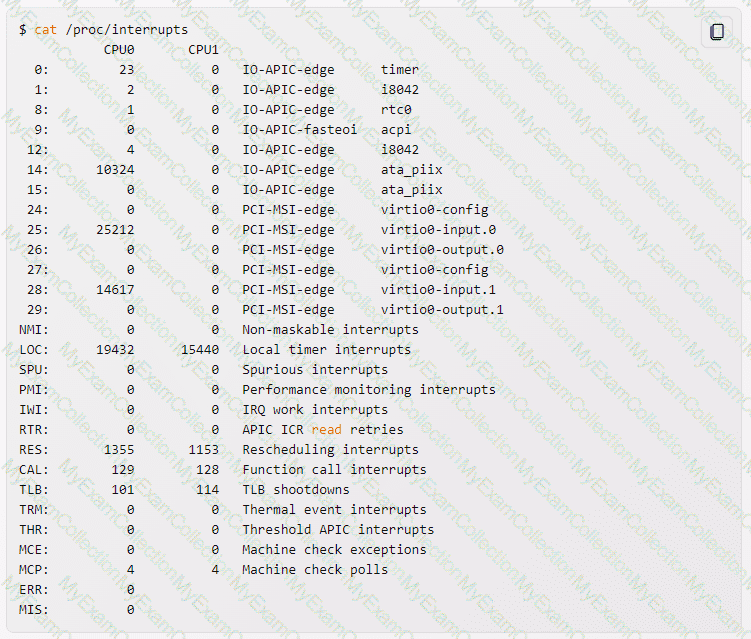 You suspect that a new ethernet card might be conflicting with another device. Which file should you check within the /proc tree to learn which IRQs are being used by which kernel drivers?