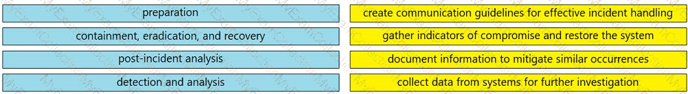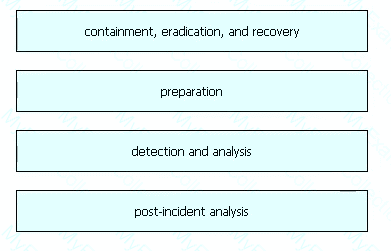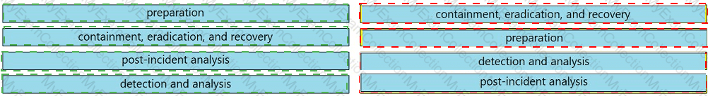 Drag and drop the elements from the left into the correct order for incident handling on the right.