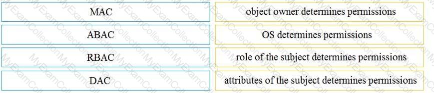 Drag and drop the access control models from the left onto the correct descriptions on the right.