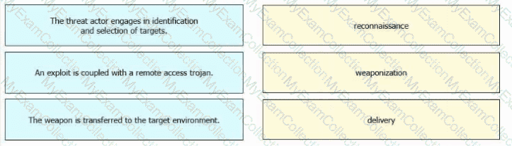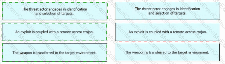 Drag and drop the definitions from the left onto the phases on the right to classify intrusion events according to the Cyber Kill Chain model.