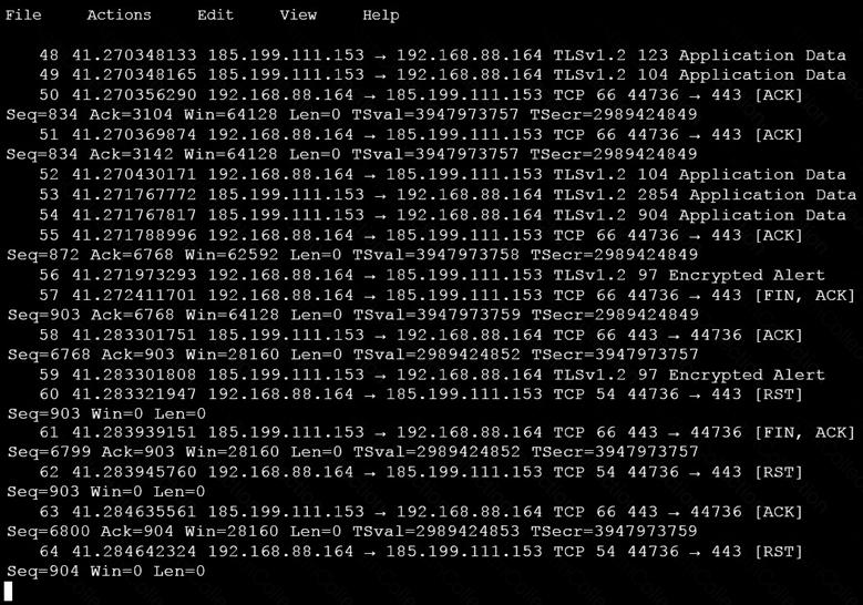 An analyst is investigating a host in the network that appears to be communicating to a command and control server on the Internet. After collecting this packet capture, the analyst cannot determine the technique and payload used for the communication.