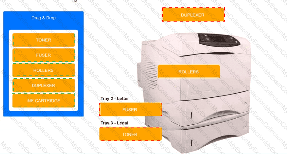 Each lime a user ties to print, the paper becomes stuck at the last stage of the print job and the user has to poll me paper out of the printer. Which of the following is me most likely cause?