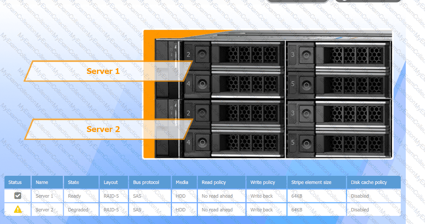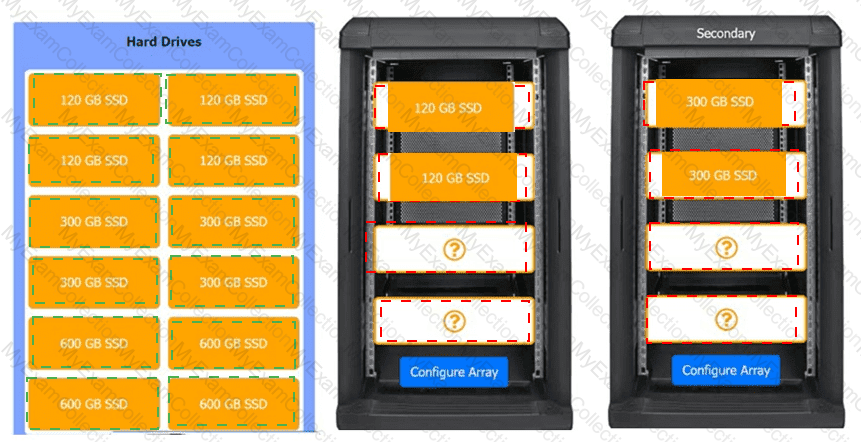 A natural disaster occurred, and the storage system for the development team is unrecoverable. The technician is preparing replacement storage arrays that include a hypervisor with the capacity to support several virtual machines. Two separate bays are available, and both should be utilized.