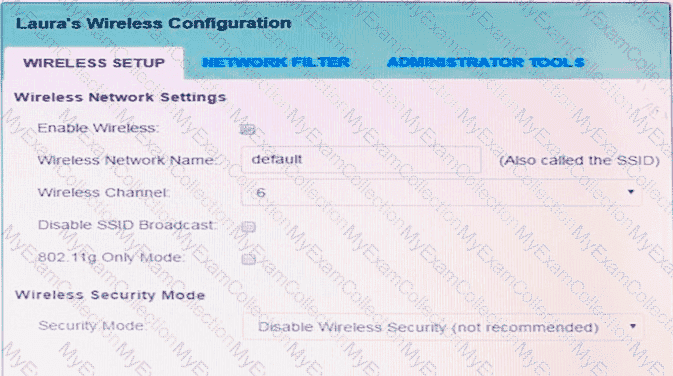 Laura, a customer, has instructed you to configure her home office wireless access point.