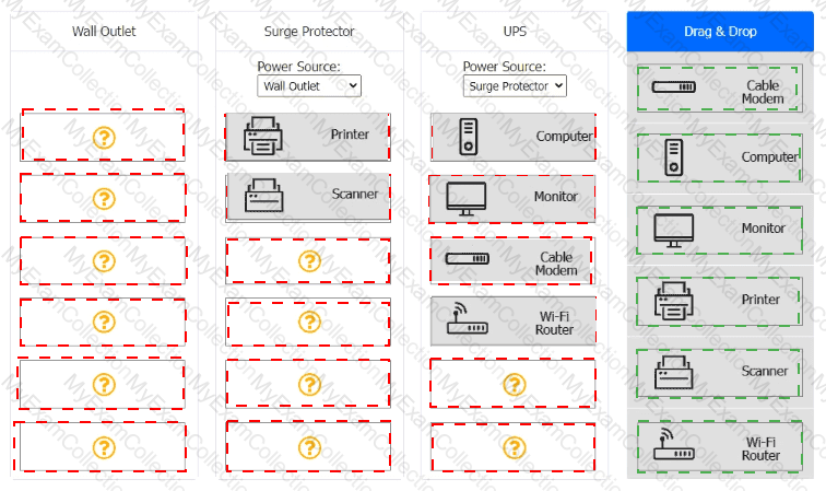 Based on the customer's requirements, connect the customer's devices to the proper outlets. Select the power source for the Surge Protector and UPS. This may require reselecting dropdowns or removing tokens.