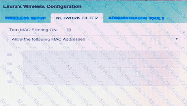 Finally, Laura wants to ensure that only her laptop and Smartphone can connect to the network.
