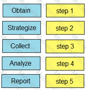 Drag and drop the steps from the left into the order to perform forensics analysis of infrastructure networks on the right.