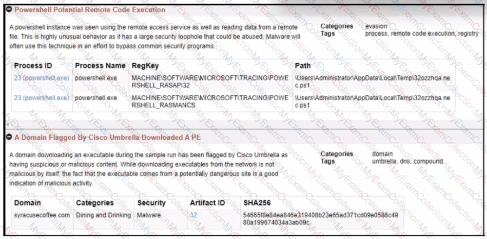 A security team is notified from a Cisco ESA solution that an employee received an advertising email with an attached .pdf extension file. The employee opened the attachment, which appeared to be an empty document. The security analyst cannot identify clear signs of compromise but reviews running processes and determines that PowerShell.exe was spawned by CMD.exe with a grandparent AcroRd32.exe process. Which two actions should be taken to resolve this issue? (Choose two.)