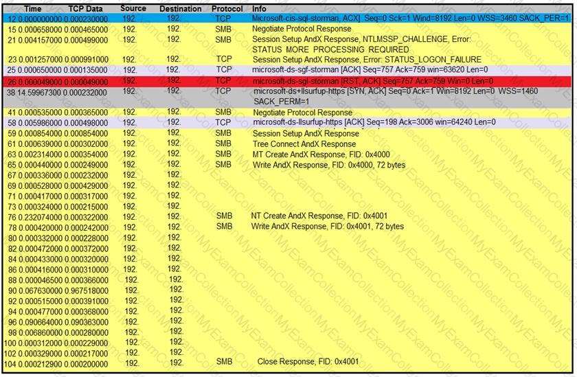 An engineer is analyzing a TCP stream in Wireshark after a suspicious email with a URL. What should be determined about the SMB traffic from this stream?