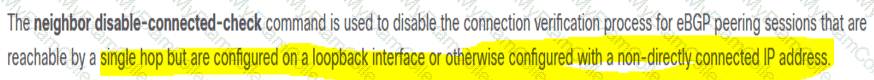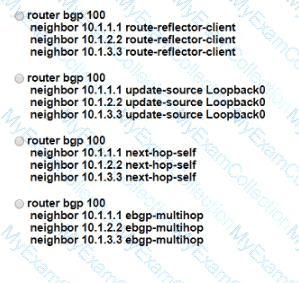 Refer to the exhibit The administrator configured the network devices for end-to-end reachability, but the ASBRs are not propagating routes to each other Which set of configurations resolves this issue?