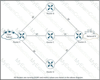 Refer to the exhibit A customer reported an issue with a fiber link failure between RC and RE Users connected through the spoke location face disconnection and packet drops with the primary email server (172.16.16.1) but have no issues with the backup email server (172.16.26.1). All the router loopback IPs are advertised through the OSPF protocol. Which configuration resolves the issue?