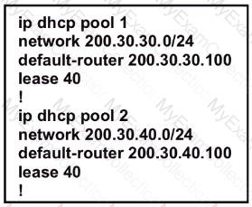 The server for the finance department is not reachable consistently on the 200.30.40.0/24 network and after every second month it gets a new IP address. Which two actions must be taken to resolve this Issue? (Choose two.)