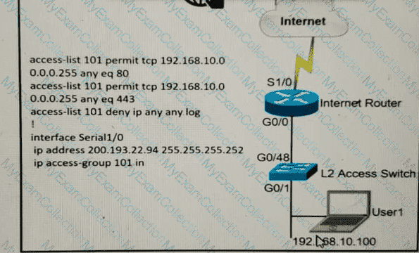 The router console starts receiving log message :%SEC-6-IPACCESSLOGP: list DENY_TELNET denied tcp 192.168.1.10(1022)(FastEthernet1/0 D508.89gb.003f) ->192.168.2.20(23), 1 packet"