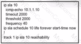 An administrator configures a router to stop using a particular default route if the DNS server 8.8.8.8 is not reachable through that route. However, this configuration did not work as desired and the default route still works even if the DNS server 8.8.8 8 is unreachable. Which two configuration changes resolve the issue? (Choose two.)
