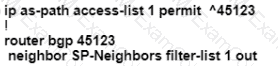 After some changes in the routing policy, it is noticed that the router in AS 45123 is being used as a transit AS router for several service provides. Which configuration ensures that the branch router in AS 45123 advertises only the local networks to all SP neighbors?