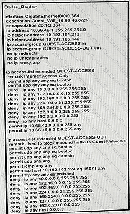 Fi. Clients are getting the correct IP address from guest Wi-Fi VLAN 364. which action resolves the issue ?