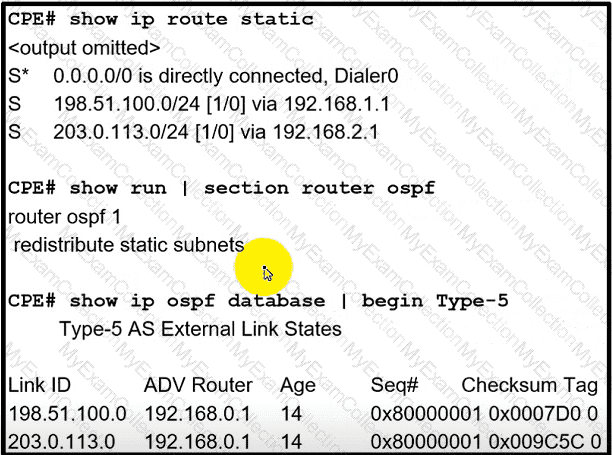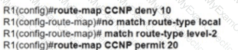 A company with autonomous system number AS65401 has obtained IP address block 209.165.200.224/27 fro, ARIN. The company needed more IP addresses and was assigned block209.165.202.128/27 from ISP2. An engineer is ISP1 reports they are receiving ISP2 routes from AS65401. Which configuration onR1 resolves the issue?