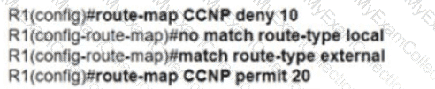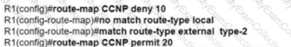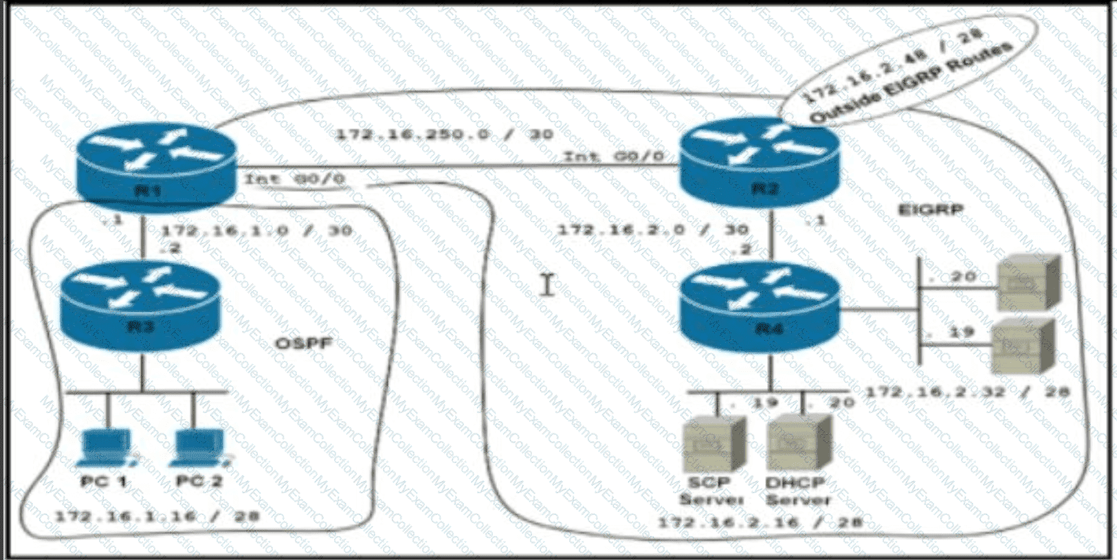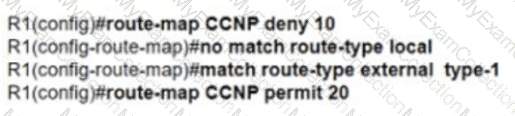 Refer to the exhibit. An engineer Is troubleshooting a routing loop on the network to reach the 172.16.3.0/16 from the OSPF domain. Which configuration on router R1 resolves the Issue?