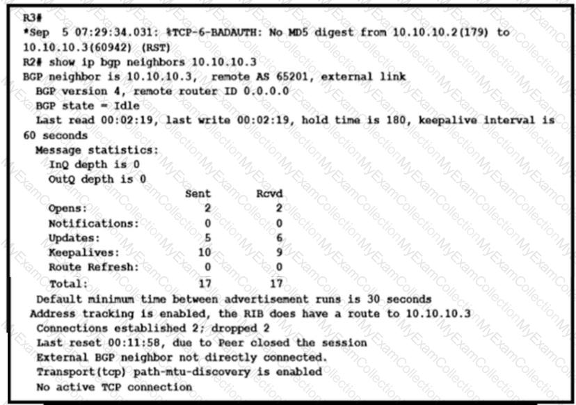 The network operation team observes a traffic forwarding issue between R2 and R3: