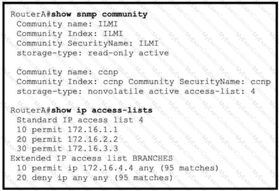 Refer to the exhibit The SNMP server with IP address 172.16 4 4 cannot access host router A Which configuration command on router A resolves the issue?