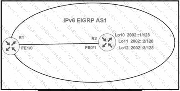 Refer to the exhibit An engineer investigates an IPv6 EIGRP neighbor adjacency issue that sees the neighbors flapping and issued a ping from R1 to its directly connected neighbor. The link between the switches is stable at Layer 2. and other connected devices are also functioning. Which action resolves the issue?