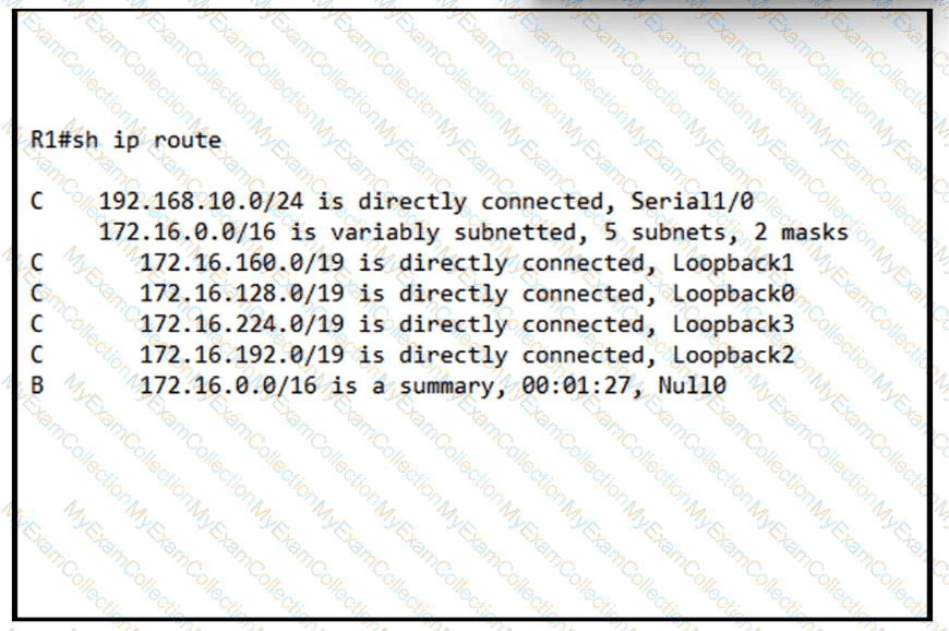 Refer to the exhibit. Which configuration advertises more specific routes to R1 without sending a BGP summary route?