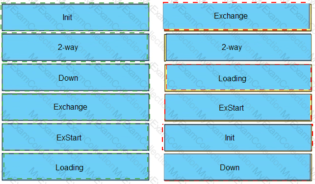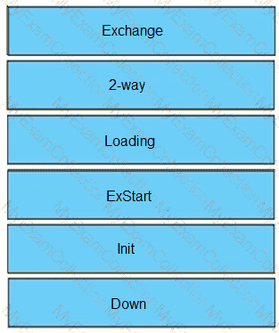 Drag and drop the OSPF adjacency states from the left onto the correct descriptions on the right.