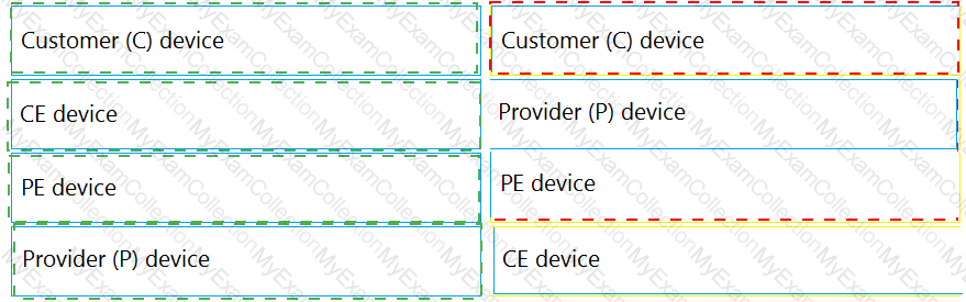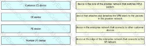 Drag and drop the MPLS VPN device types from me left onto the definitions on the right.