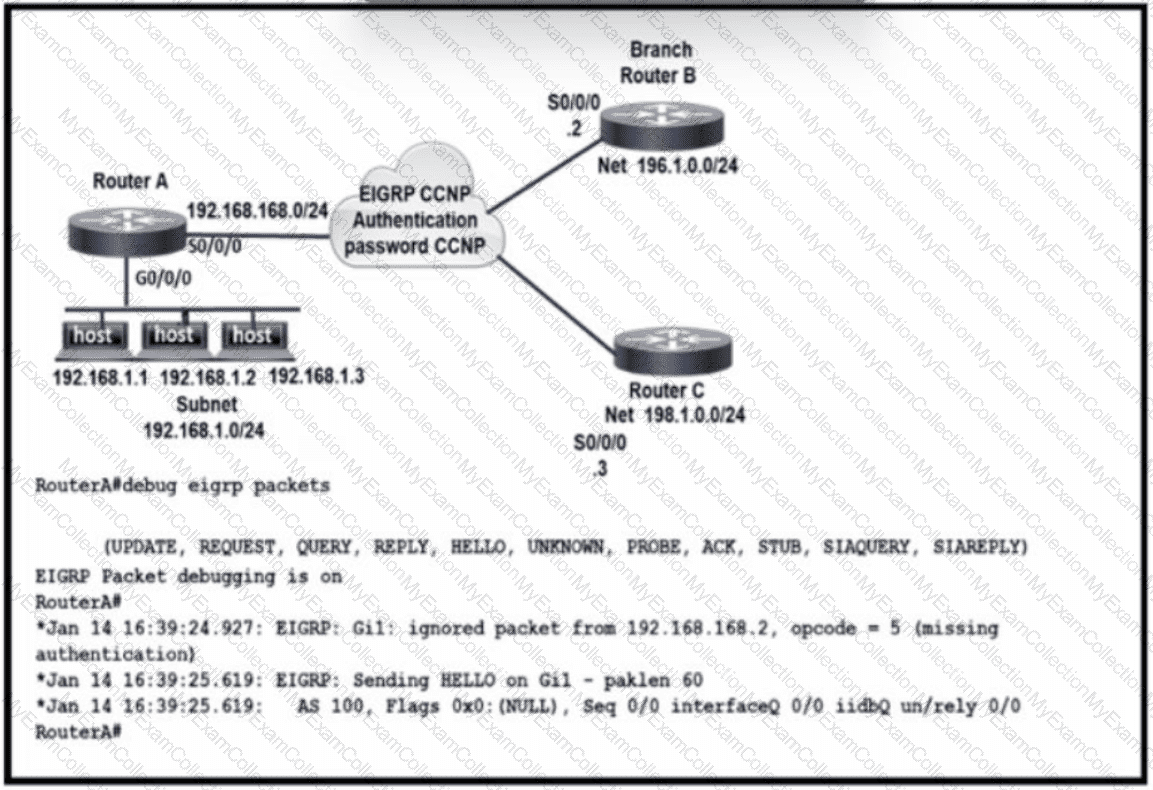 Refer to the exhibit. The services at branch B are down. An engineer notices mal rouler A and router B are not exchanging any routes Which configuration resolves the issue on router B?