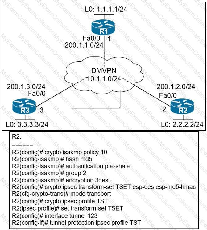 A network engineer is adding a new spoke router into an existing DMVPN Phase 3 tunnel with a hub router to provide secure communication between sites Which additional configuration must the engineer apply to enable the tunnel to come up?