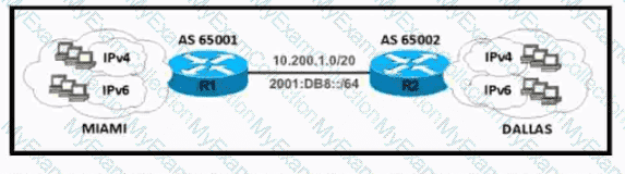 Refer to the exhibit. A network engineer configured routers R1 and R2 with MP-BGP. The engineer noticed that the routers cannot exchange any IPv6 routes, however, the IPv4 neighbor relationship is working fine. Which configuration must the engineer apply to router R2 to exchange IPv6 routes?