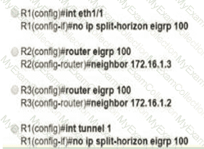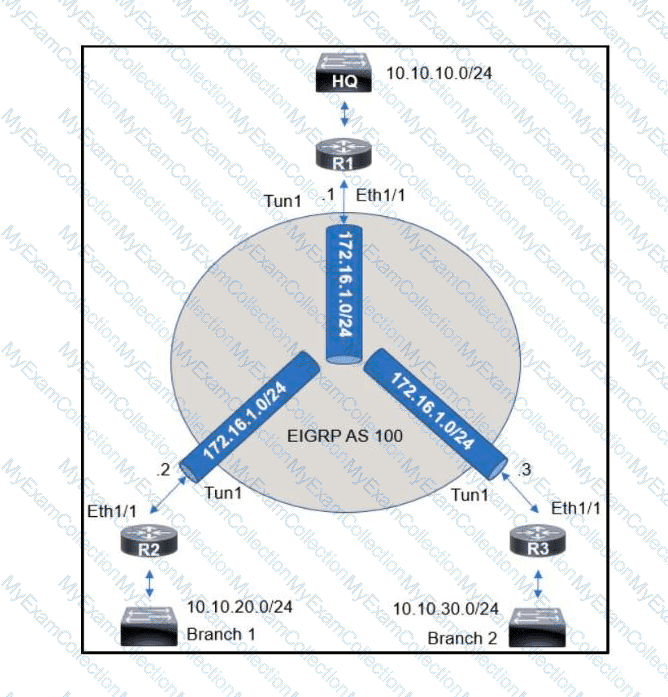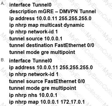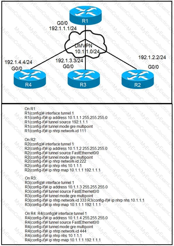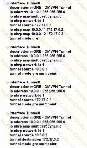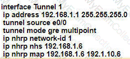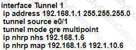 An engineer must establish multipoint GRE tunnels between hub router R6 and branch routers R1, R2, and R3. Which configuration accomplishes this task on R1?