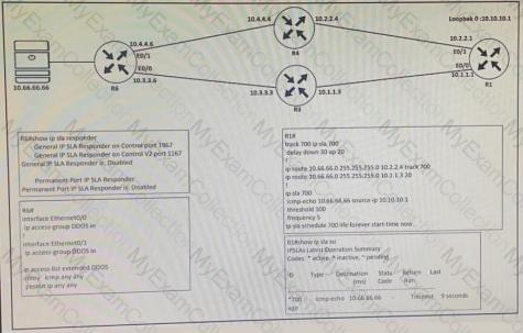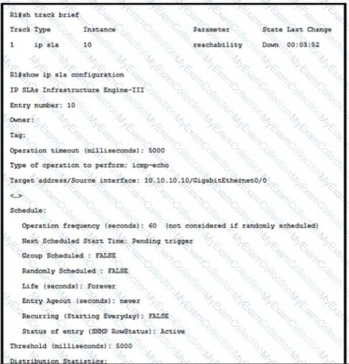 Refer to the exhibit A network engineer notices that the configured track option is down Which configuration resolves the issue*?