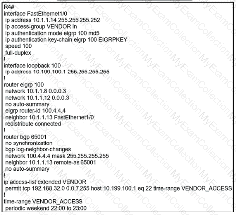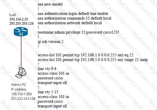 Refer to the exhibit A network engineer received a call from the vendor for a failed attempt to remotely log in to their managed rooter loopback interface from 192 168.40 15 Which action must the network engineer take to resolve the issue?