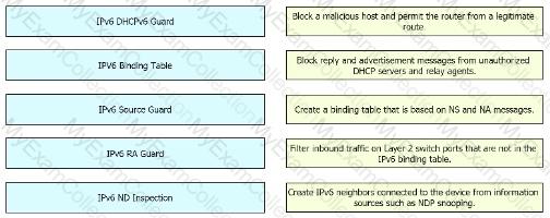 Drag and Drop the IPv6 First-Hop Security features from the left onto the definitions on the right.