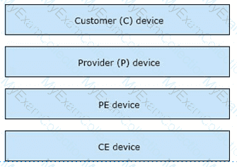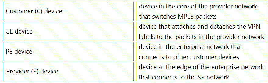 Drag and drop the MPLS VPN device types from the left onto the definitions on the right.