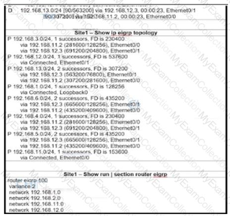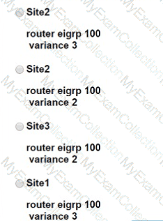 Refer to the exhibit. Site1 must perform unequal cost load balancing toward the segments behind Site2 and Site3. Some of the routes are getting load balanced but others are not. Which configuration allows Site1 to load balance toward all the LAN segments of the remote routers?