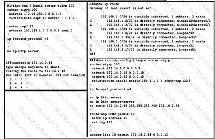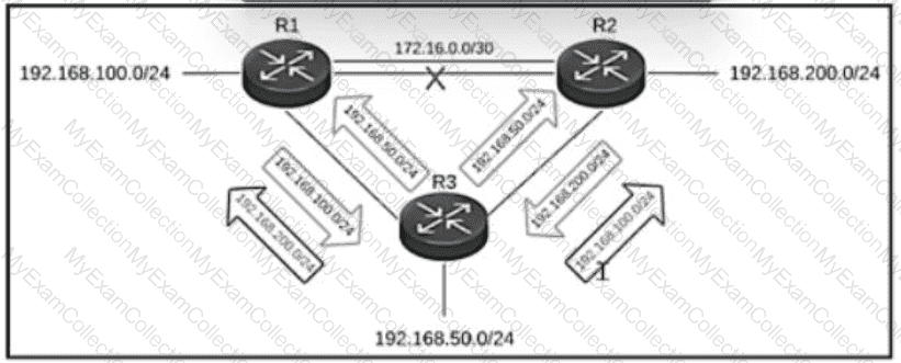 Refer to the exhibit. The primary link between R1 and R2wentdownbutR3isstill advertising the 192.166.200.0/24 networktoR1 and the 192.166.100.0/24 networktoR2, which createsaloop. Which action resolves the issue?