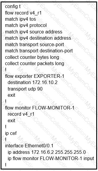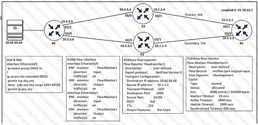 Refer to the exhibit An engineer configured NetFlow but cannot receive the flows from R1 Which two configurations resolve the issue? (Choose two )