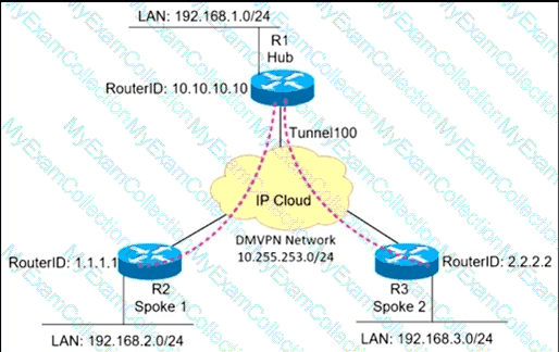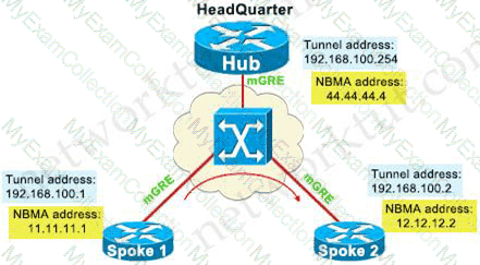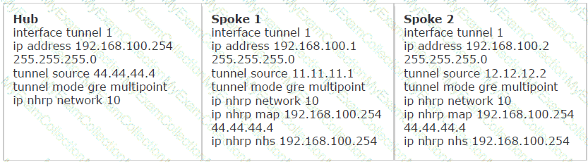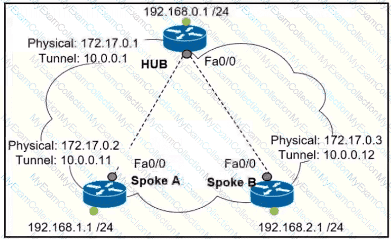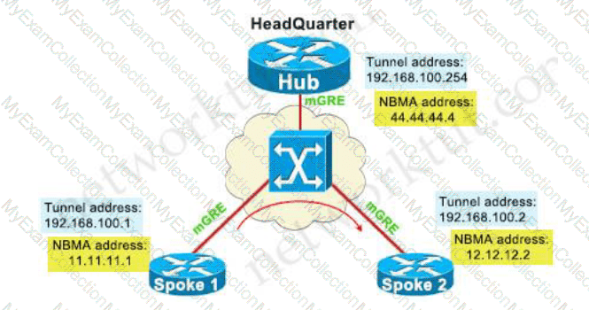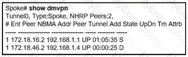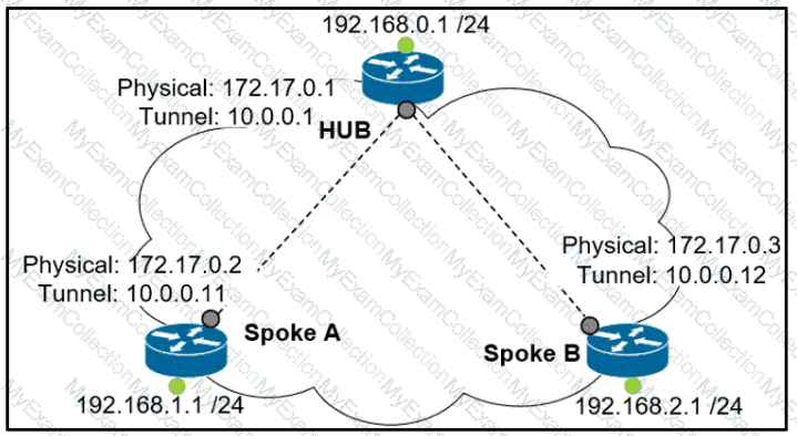 An engineer has configured DMVPN on a spoke router. What is the WAN IP address of another spoke router within the DMVPN network?