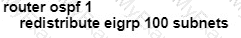 Which subnet is redistributed from EIGRP to OSPF routing protocols?