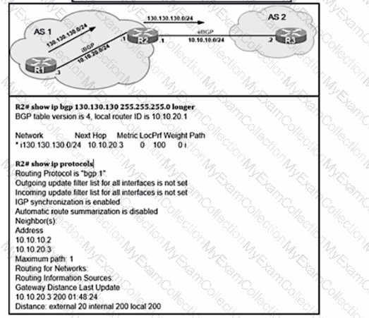 Refer to the exhibit. The 130.130.130.0/24 route shows in the R2 routing table but is getting filtering toward R3. Which action resolves the issue?