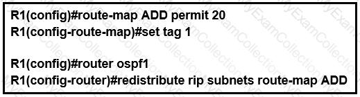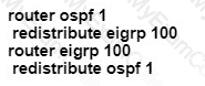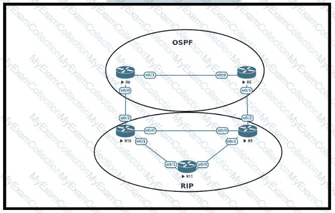 An engineer must configure OSPF with R9 and R10 and configure redistribution between OSPF and RIP causing a routing loop Which configuration on R9 and R10 meets this objective?
