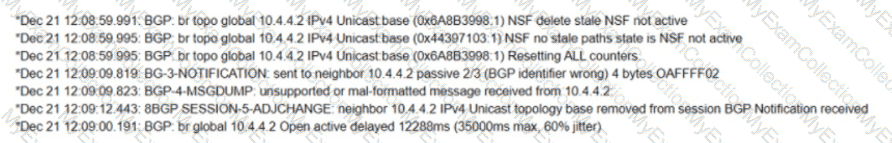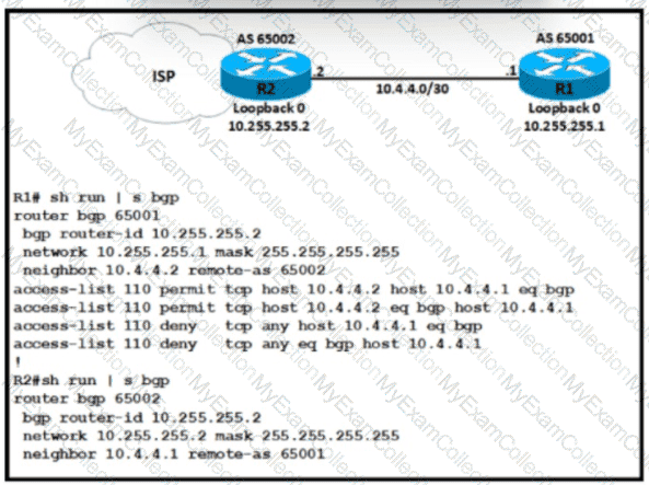 Refer to the exhibit A network engineer notices that R1 and R2 cannot establish an eBGP peering. The following messages appear in the log: