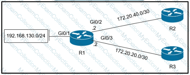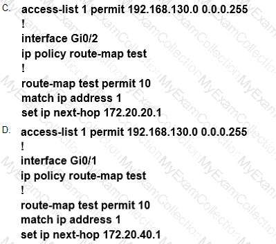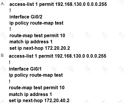 Which policy configuration on R1 forwards any traffic that is sourced from the 192 168 130 0'24 network to R2?