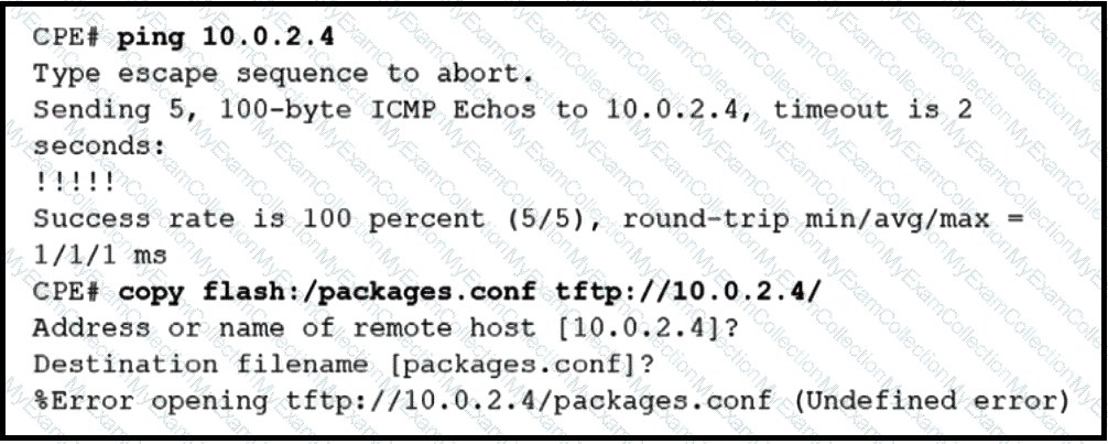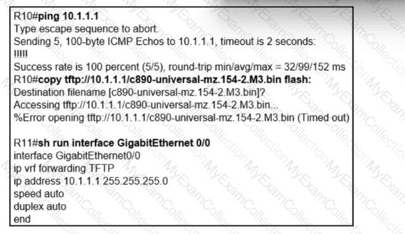 Refer to the exhibit. R10 attempts to copy an image file from R11 using TFTP, and the operation is timing out. Which action resolves the issue?