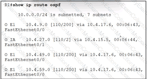 Refer to the exhibit. An engineer configured two ASBRs, 10.4.17.6 and 10.4.15.5, in an OSPF network to redistribute identical routes from BGR However, only prefixes from 10.4.17.6 are installed into the routing table on R1. Which action must the engineer take to achieve load sharing for the BGP-originated prefixes?